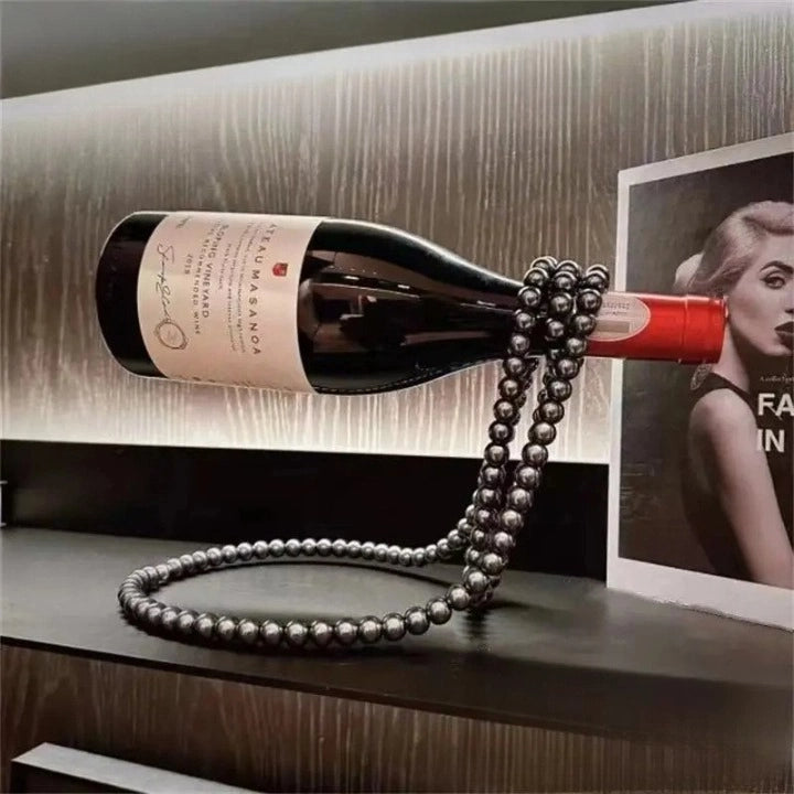 Butelį laiko elegantiška, perlų imitacija tviskanti grandinė, kuri sukuria prabangaus stiliaus iliuziją. Perlo spalvos akcentai suteikia laikikliui elegancijos ir išskirtinumo. Nors atrodo lengvas, šis laikiklis pagamintas iš kokybiško metalo, užtikrinančio patikimą butelio laikymą. Stilinga, funkcionali detalė bet kokiam interjerui. Pasirinkite savo favoritą bei nustebinkite save ir svečius! 🍷✨